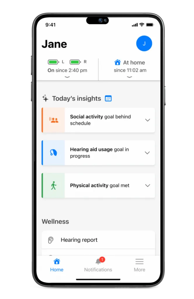 Hear Share is the world’s first app that lets people wearing hearing aids with edge AI technology share health and wellness information with people they select. The Hear Share app works with the Thrive Hearing Control app to enable easy sharing of information about hearing aid usage, social engagement, health activities and more.